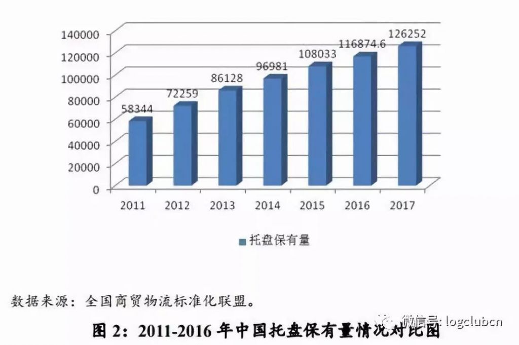 据统计,截至2017年底,中国托盘市场保有量达到12.63亿片,同比增长8.0%。其中1.2m×1.0m 标准托盘市场占比达到28%左右,较 2016 年底提高1个百分点,重点商贸物流领域1托盘标准化率达到65%。2017年,标准托盘租赁池规模达到1770万片,较2016年底(1700 万片)增长4.1%。
