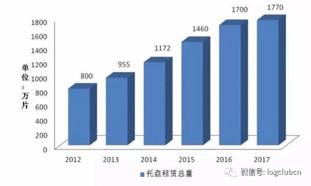 (图 4:2012-2017 年托盘租赁市场托盘总量)
