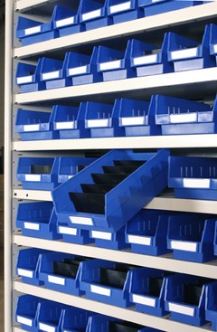 Replace worn out corrugated bins permanently with these tough, durable, high density plastic bins. These durable polypropylene bins feature a molded-in label holder, built-in rear hang-lock which allows bins to tilt out for complete access when on shelving. A wide hopper front allows complete access to the contents of the bin. Edges are reinforced for added strength. They are designed for 12", 18" and 24" deep shelf units, racks or standard shelving. Bins are waterproof, impervious to most chemicals and unaffected by grease or oil. Meet FDA standards.