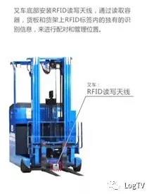 叉车底部安装了RFID读写天线,通过读取容器、货板和货架上的RFID标签内的独有的识别信息,来进行配对和管理位置。