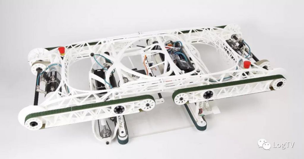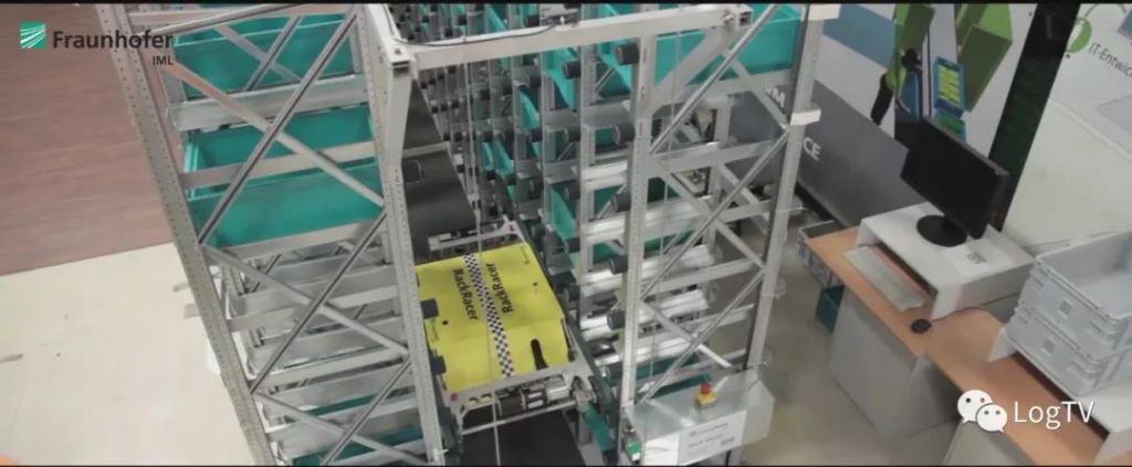 RackRacer是一种机架穿梭车,它配备两个可旋转的履带元件,可在机架上的各个点上进行自我支撑。使得穿梭车能够完全自主地在机架中的任何位置存储或取回物品,运行时不需要轨道。
